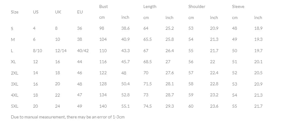 Sizes: S‑5XL (True to generous fit — see size chart)
